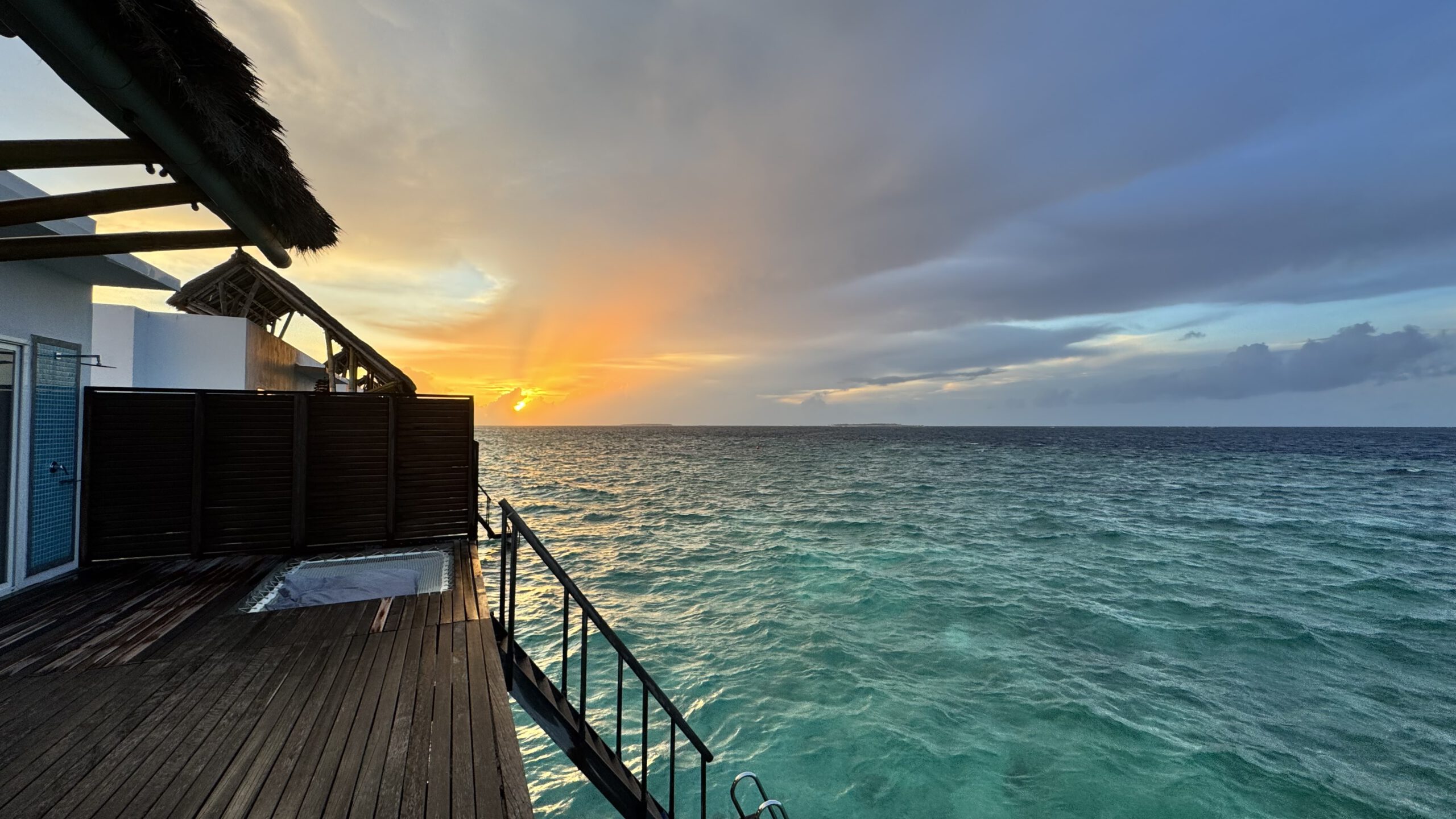 Doch damit nicht genug: Wir durften noch ein weiteres „Leading Hotel of the World“ live erleben. Unser nächstes Zuhause war das wunderschöne, viel kleinere 5*-Hotel „Emerald Faarufushi“ – ein idyllisches Barfuß-Hotel par excellence!