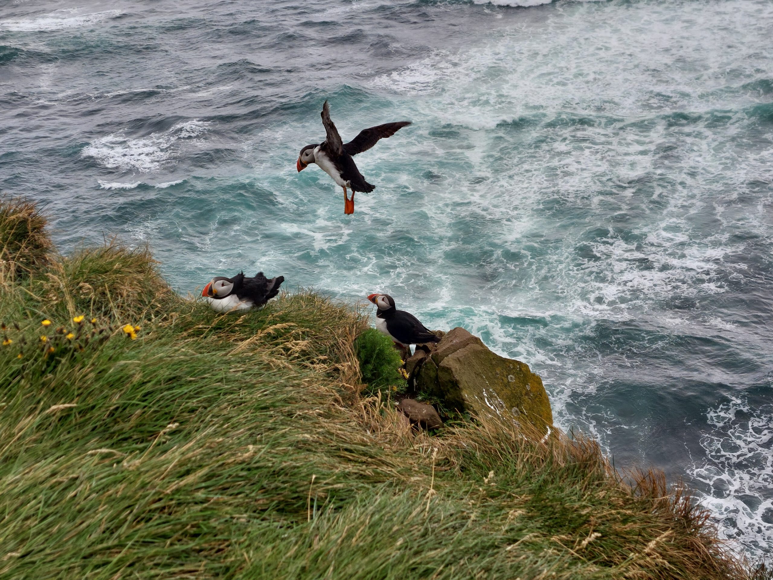 Der Westen und vor allem die Westfjorde beeindrucken mit einer Mischung aus Ruhe, wilder Natur und tierischen Highlights, wie Robben und den kleinen putzigen Papageitauchern sowie zahlreichen Küstenvögeln. Wie auf der ganzen Insel begegnet man auch hier zahlreichen Schafen und Islandpferden, mit etwas Glück sieht man auch Polarfüchse und Rentiere.